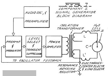 This resonance however is achieved through control of two other factors. The first is the molal concentration of salt in the water. This is controlled by measuring the conductivity of the water through the built in current meter of Component I. There is maintained an idea ratio of current to voltage I/E = 0.01870 which is an index to the optimum salt concentration of 0.1540 Molal.
