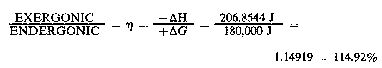 In practical bookkeeping terms the balance of debits and credits, n = (-.DELTA.H) - (+.DELTA.G), so, n = 206.8544 J - 180.0 = + 26.8544 J (surplus).