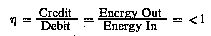 Efficiency is deduced on the grounds of scientific accounting principles which are based on accurate measurements of total energy input to a system (debit), and accurate measurements of total energy (or work) obtained out of the system (credit). In principle, this is followed by drawing up a balance sheet of energy debits and credits, and expressing them as an efficiency ration, .eta..