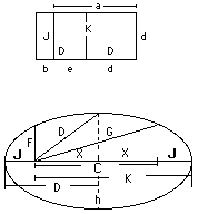 4) The fourth method involves having any two of the measurements along the major diameter, (Or line of apsides). This method is the most acceptable and accessible because these can be the most accurate and all four measurements can be easily determined. The four measurements then contain all four roots of the ellipse. They are J = bd, C/2 = ed, D = d^2, and K = ad. Of these, D is the square of the root d. Then dividing any of the other measurements by this root will produce their other root. This method is used almost exclusively in this text, and is the basis for the computer program given elsewhere.