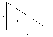 • The hypotenuse added to the base equals the area of B. i.e., G - C = B.