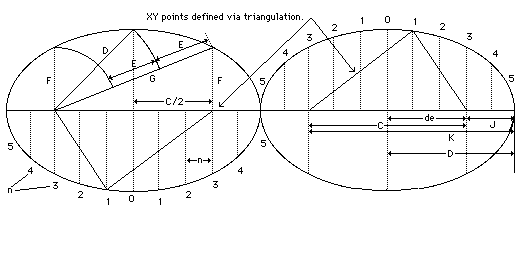 • The XY points of "1" alongthe perimeter are determined by triangulation from the Base C and Height F.