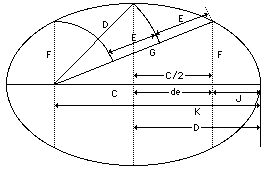 • On the other hand, the value of D, is the distance from either focus to the midpoint on the rim of the ellipse. In this latter position, it also sets the value of the semi-minor diameter.